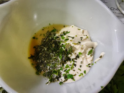 ...I decided to use as many of the fresh herbs from the recipe as I had on hand...so that was tarragon, chives, parsley and dill...I think I might make it again with just dill...but dill is not the Man's favorite flavor...so it'd just be for me then...